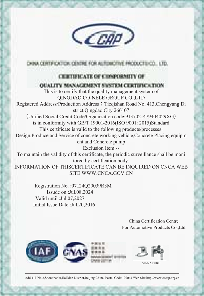 CO-NELE currently offers a comprehensive product portfolio that includes concrete pumping equipment, concrete mixing equipment, environmental protection equipment, intelligent control systems, and multi-level parking systems. The company provides more than 1,000 units of various pumping equipment, including concrete pump trucks, wet spraying trucks, truck-mounted concrete pumps, trailer concrete pumps, concrete placing booms, aerial platforms, and a wide range of customized pumping solutions. These products are widely applied across multiple sectors such as construction, municipal infrastructure, hydropower, coal mine backfilling, sewage dredging, and firefighting.